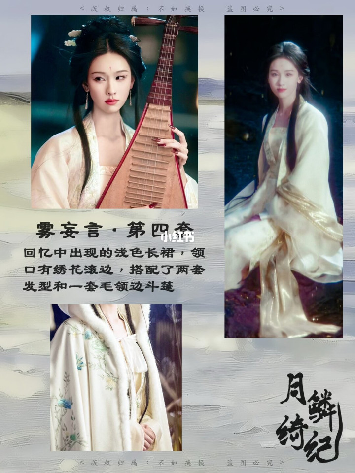 回忆里的浅色绣花长裙,领口绣花滚边 + 毛领斗篷,温婉动人,尽显角色的柔软一面;