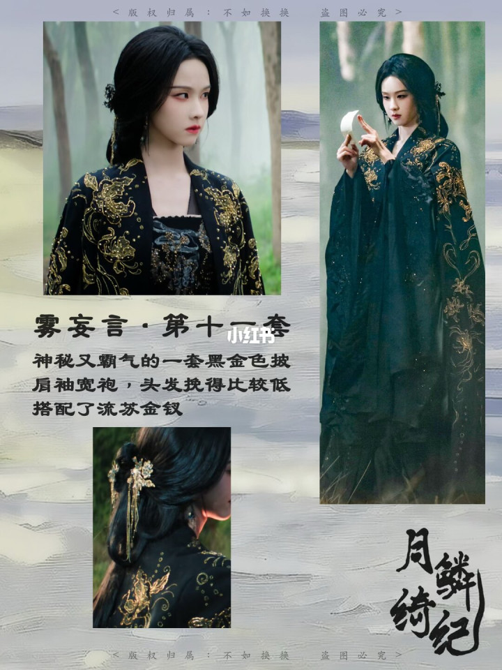 黑金刺绣宽袍,神秘霸气,流苏金钗更添贵气,手持书卷的造型直接帅炸;